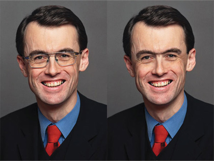 Для начала, с помощью инструментов Clone Stamp и Healing Brush я убрал очки.