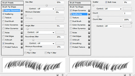 Прозрачность, размер и жёсткость кисти зависит только от картинки, которую вы ретушируете, поэтому нет идеальных настроек, которые можно один раз выставить и забыть про них. Требуется постоянно варьировать настройки кисти, чтобы добиться максимально правдоподобной картинки. Также важно менять clone source (то есть точку, откуда берётся материал для клона) чтобы текстурный рисунок не повторялся.