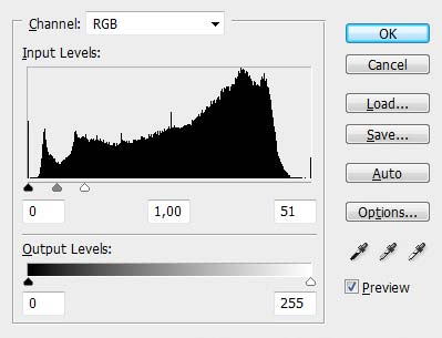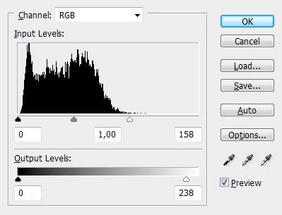 переносим морщину с донора на нашу картинку. Выбираем для слоя с морщиной наложение Soft Light, переводим его в чёрно-белый (можно попробовать через channel mixer, но я просто убрал цвет через Hue\Saturation). Так же я рекомендую поэкспериментировать или с Levels, или c Curves. Например, почти ко всем морщинам я применял примерно такие установки Levels.