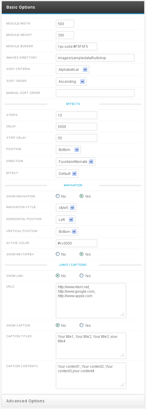 Модуль для красивого вывода эффектного слайдшоу от разработчика расширений Joomla CMS "VTEM Extensions". VTEM SlideShow Module совмесстим со всеми версиями Joomla 1.5 / 1.6 / 2.5 / 3.0 !