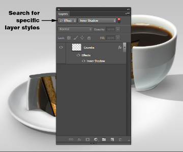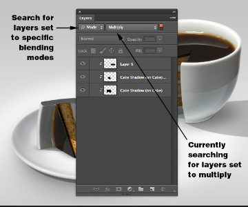 К примеру, если вы хотиите найти все пиксельные слои, все, что вам нужно сделать, это кликнуть на символ пиксельного слоя. Таким же способом вы легко сможете найти настройки, текст, фигуру и т.п. В добавок к этой есть также опция поиска слоев с такими стилями как отбрасывание тени, фаска и тиснение. Еще одной фишкой стала возможность поиска слоев с примененным к ним режимом смешивания. Например, если вам нужно найти все мягкие светлые слои в ваших psd, вы сможете сделать это при помощи пары кликов.