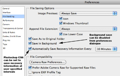 - Photoshop CS6 может быть настроен таким образом, что информация будет схраняться в установленные пользователем интервалы